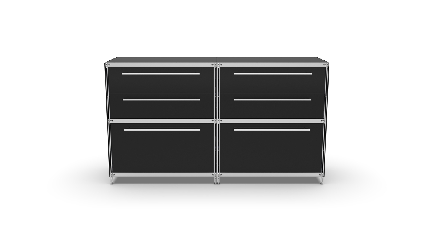 KUBUS Sideboard Metall schwarz pulverbeschichtet mit 2 Doppel-Schubladen + 2 Schubladen groß 160 cm breit
