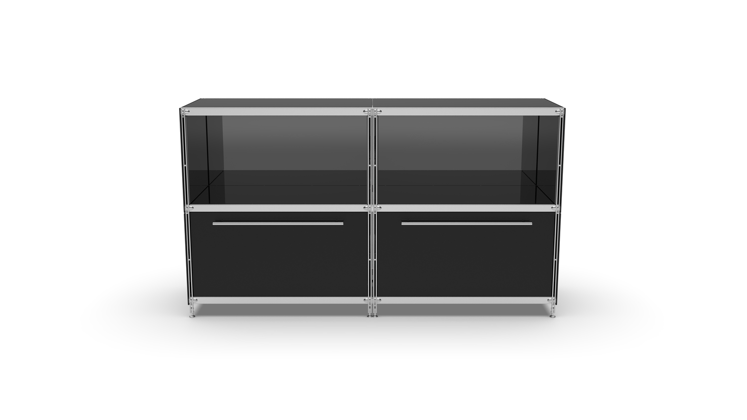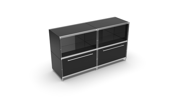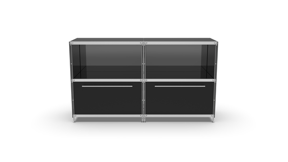 KUBUS Sideboard Metall schwarz pulverbeschichtet mit 2 Fächern offen + 2 großen Schubladen 160 cm breit
