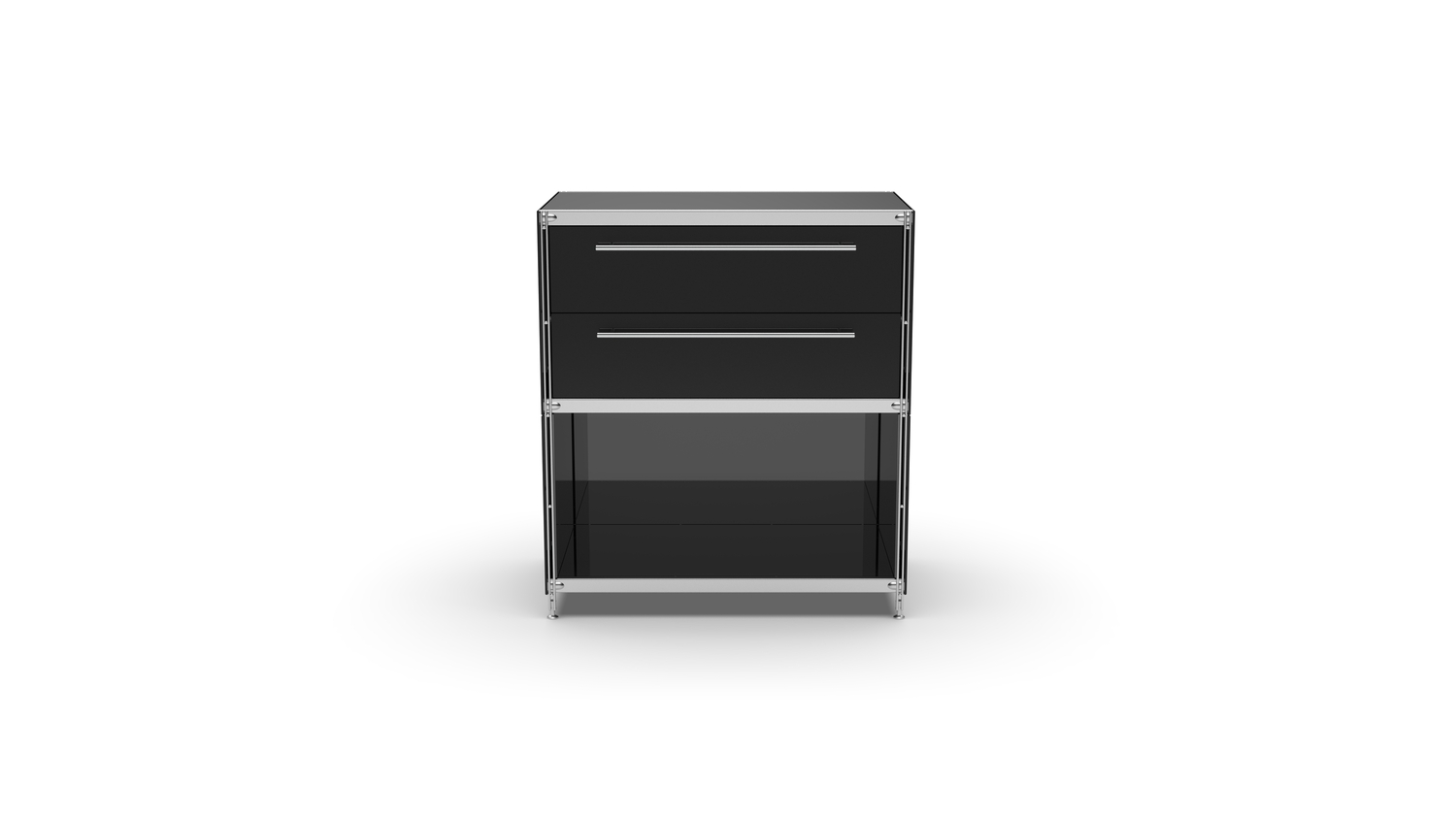KUBUS Sideboard Metall schwarz pulverbeschichtet mit Doppel-Schublade + 1 Fach offen 80 cm breit