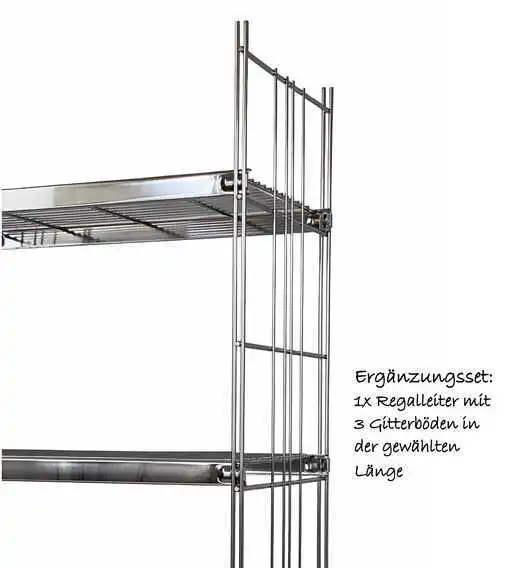 Die Böden lassen sich an jeder Querstrebe einhängen. Mit Ergänzungssets ist das Regal in der Breite beliebig erweiterbar.