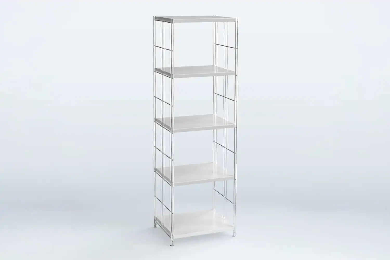 - Lieferumfang: 1x Regal in der gewählten Breite bestehend aus 2x Leitern mit Stellfüßen (schraubbar), 5x Blechboden mit Halterungen, zur Selbstmontage, ohne Dekoration!