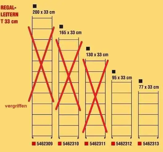 1x Regalleiter, 80 cm hoch 25 cm tief, mit Stellfüßen