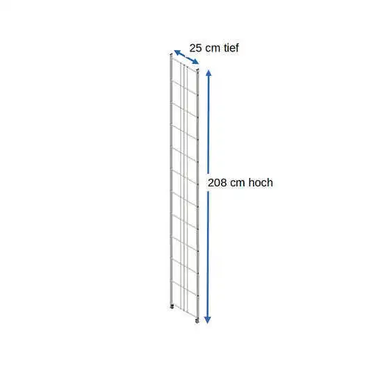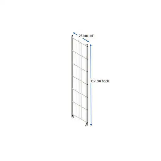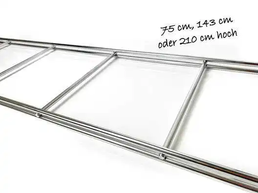208 cm hoch 38 cm tief, mit justierbaren Stellfüßen, aus der Serie BIII 380, Metall, verchromt. Achtung: Sperrgut - Überlange, Versand per Spedition