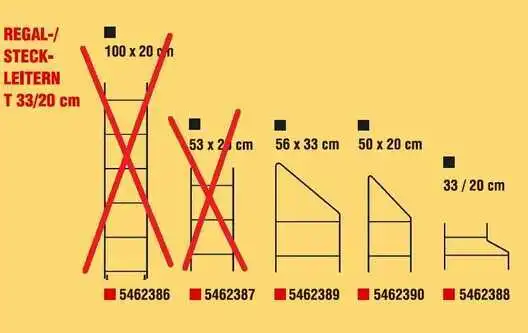 1x Regalleiter, 38 cm tief, 44 cm, 62 cm, 80 cm, 98 cm, 117 cm, 135 cm, 154 cm, 172 cm oder 190 cm hoch passend für BIII 380 Elemente
