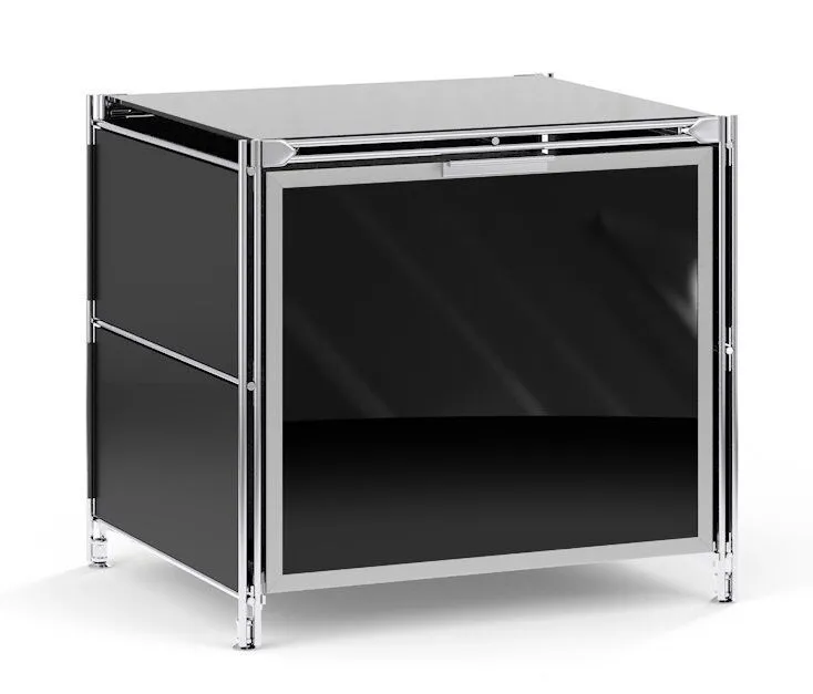 Der KUBUS Container aus Metall sorgt im Büro für Ordnung. Das Schubfach lässt sich durch den Softclose-Teilauszug sanft schließen. Ein Blickfang ist die blickdichte Schwarz-Glas-Schubladenfront.