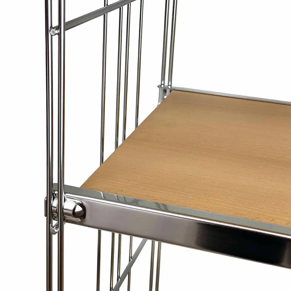 Die 19 mm starke Einlegeplatte im Buche-Farbton bringt Wärme und Gemütlichkeit in den Raum. Der Boden wird in den Metall-Rahmen geschoben und anschließend in die Regalleiter eingehängt.