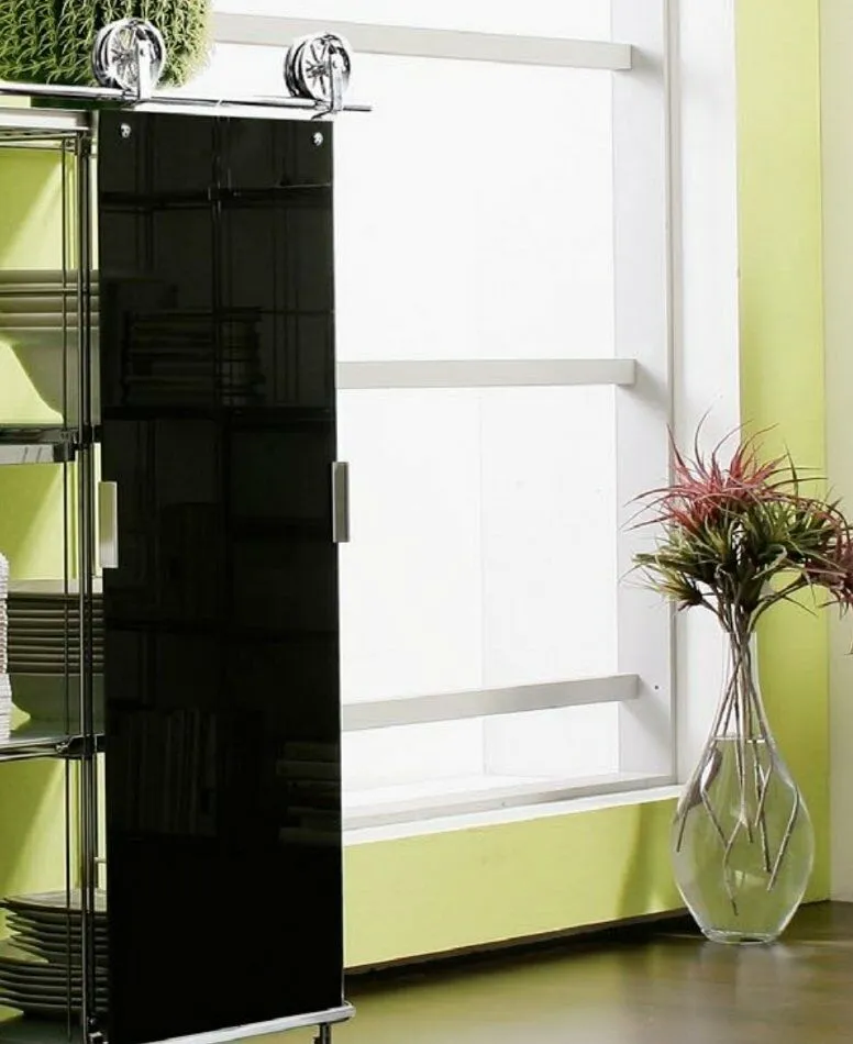- Lieferumfang: 1x Schiebetür, Rollen, Laufschienen, Montagematerial zur Montage an Gitterböden. Befestigungsmaterial für Holz- oder Metallböden bitte separat bestellen! Ohne Regal-Seitenteile, ohne Dekoration!
