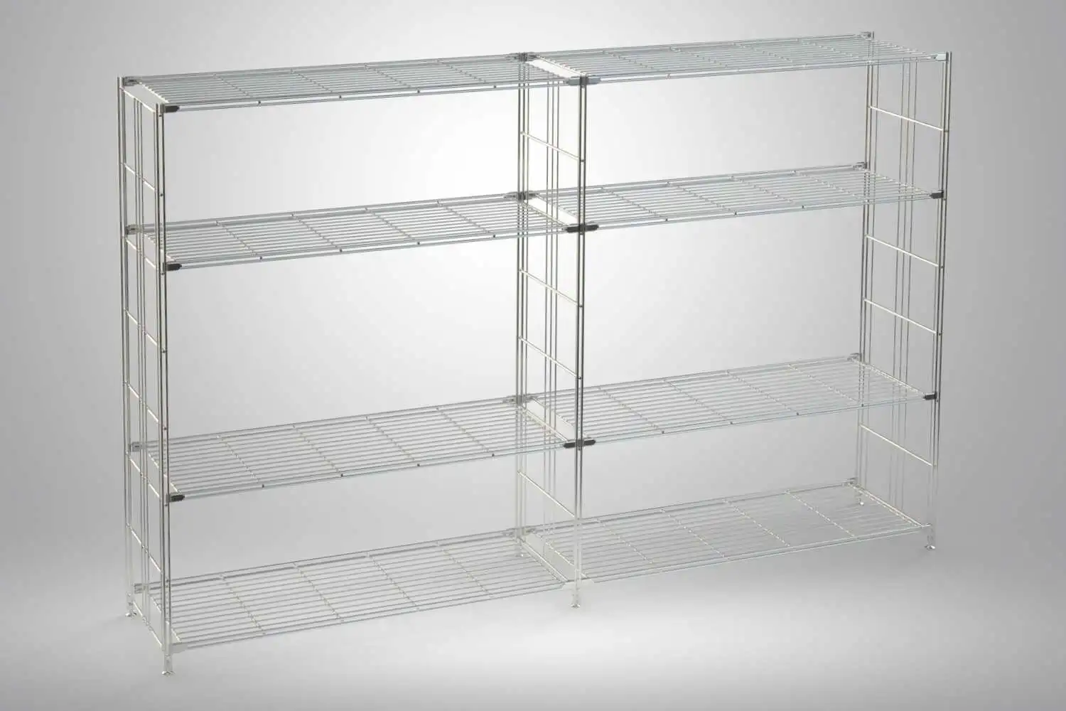 1x Regal, 135 cm hoch, 210 cm breit, 38 cm tief, mit 8 Gitterböden Metall, verchromt, hergestellt in Deutschland