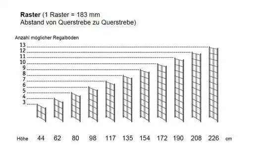 Die Breite des Regals berechnet sich aus der Breite des Regalbodens (z. B. Gitterboden 85 cm) + 2 cm für die Regalleitern = 87 cm. Ohne Dekoration!