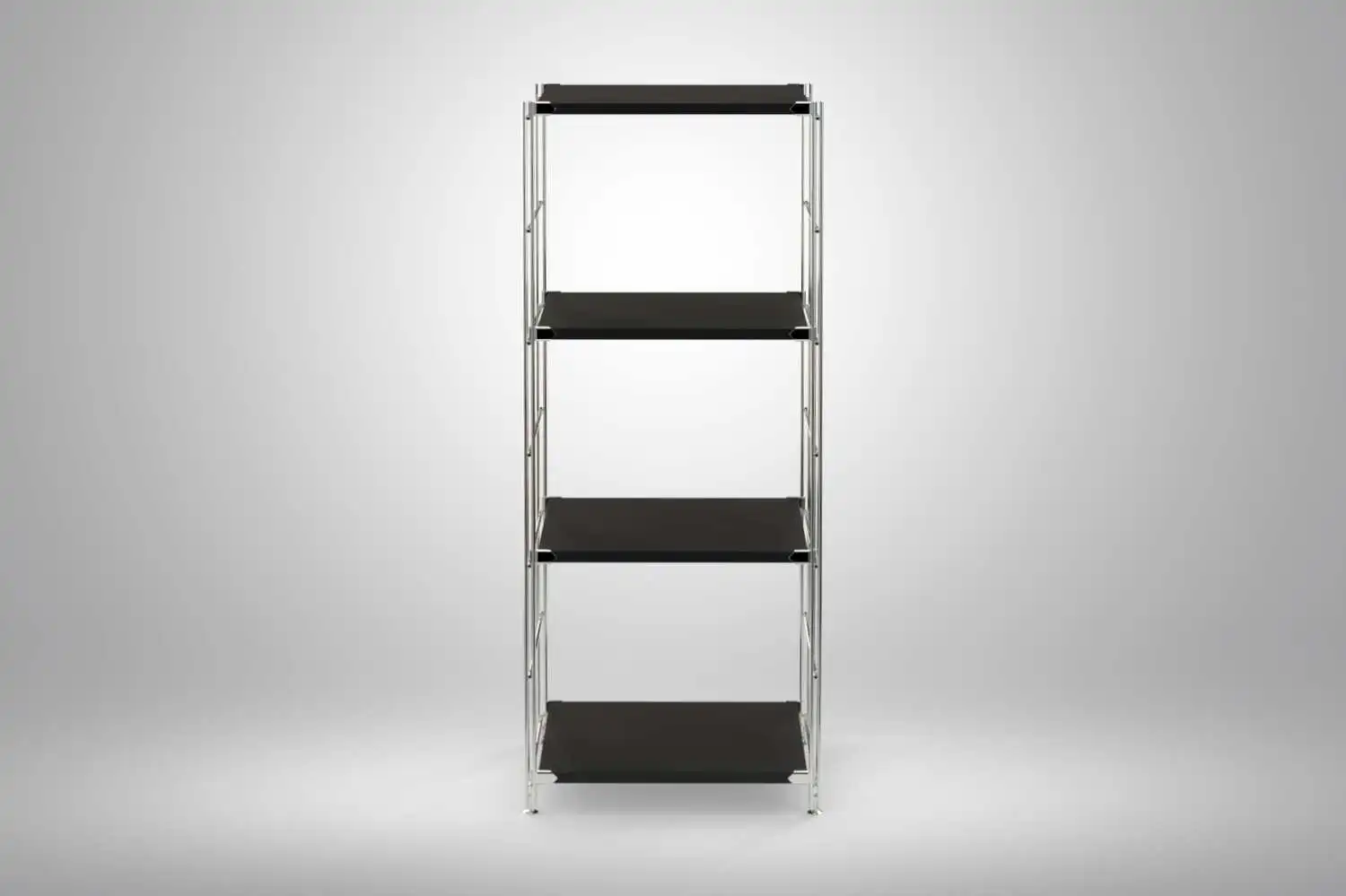 - Lieferumfang: 2x Regalleitern mit Stellfüßen, 117 cm hoch, 4x Holzböden schwarz lackiert mit Halterungen in der gewählten Breite