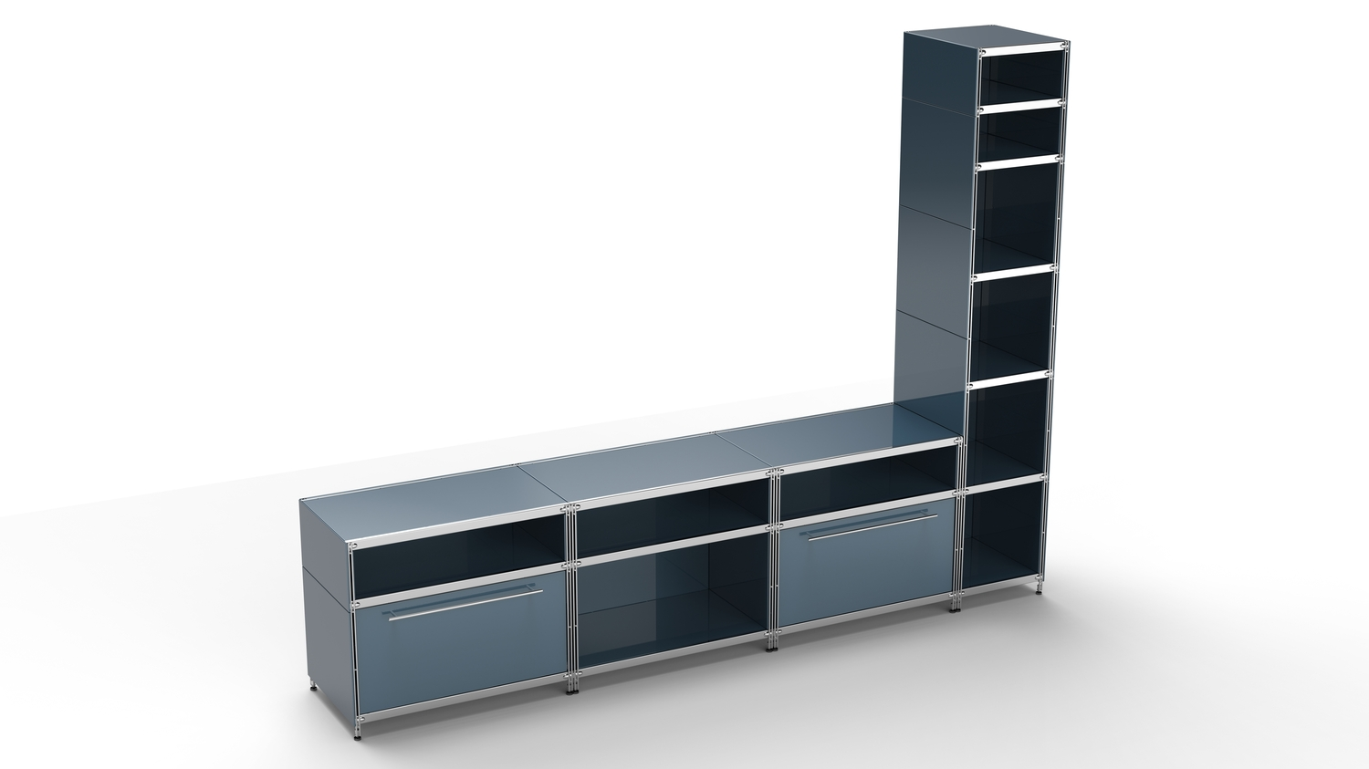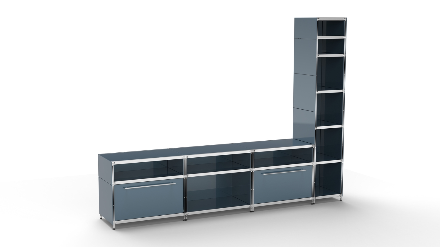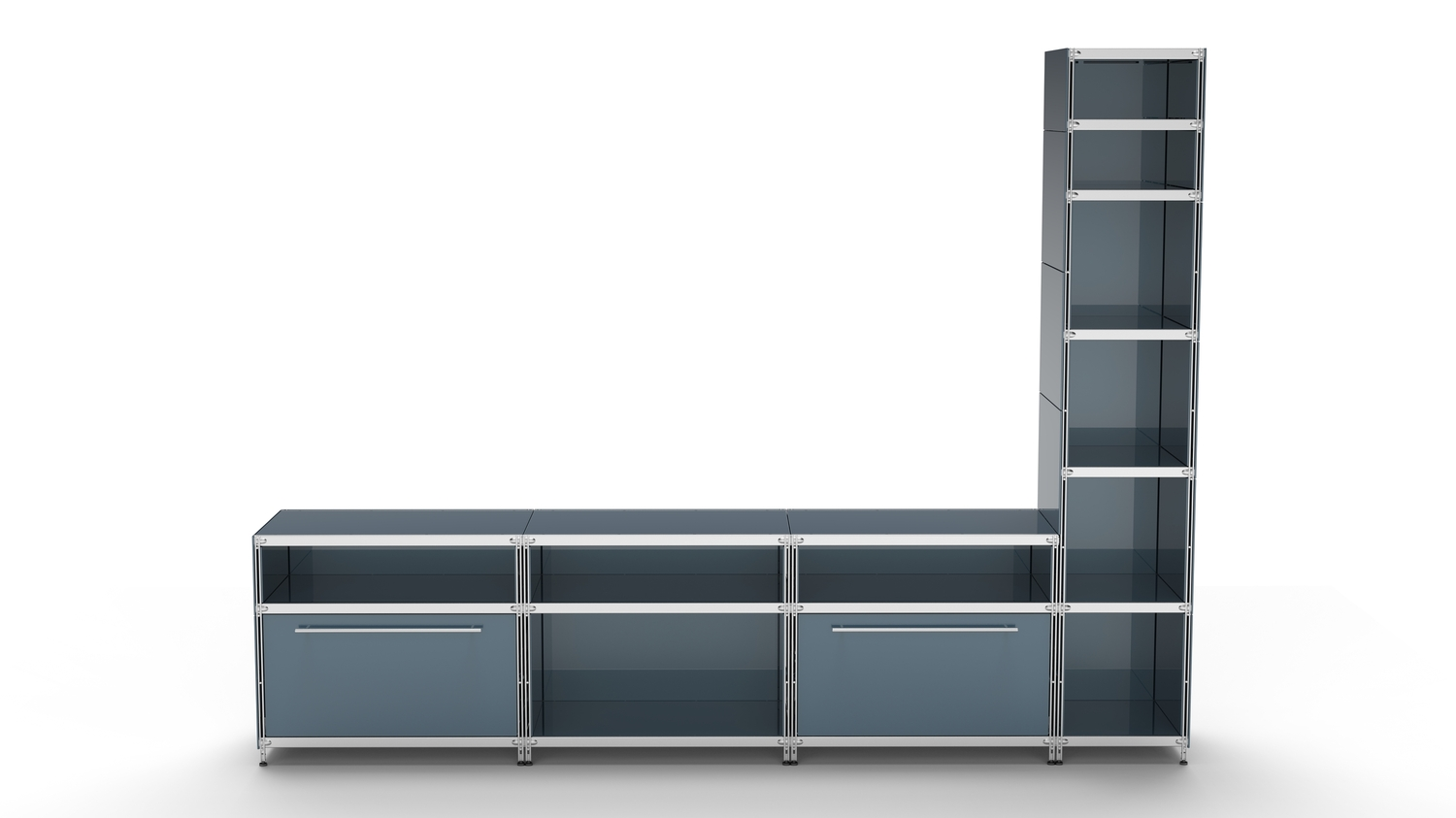 KUBUS stufig Metall anthrazit pulverbeschichtet mit 10 Fächern offen + 1 Schubfach groß 280 cm breit