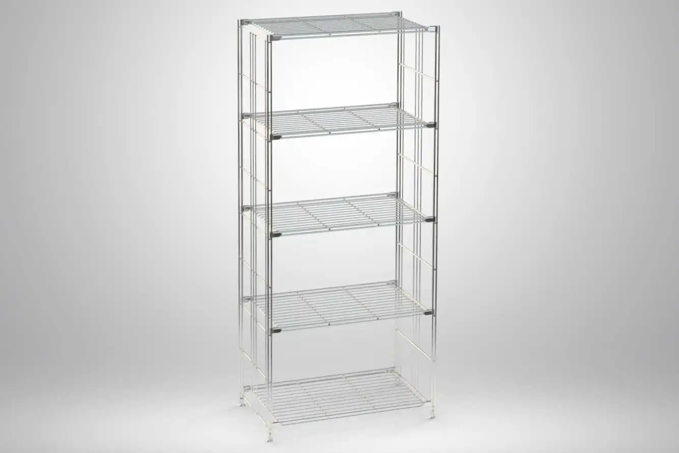 Klassisches Metallregal, verchromt, 38 cm tief, aus hochwertigem Metall, mi 5 Gitterböden aus dem Hause BALTON in verschiedenen Breiten. Durch die höhenverstellbaren Schraub-Füße lassen sich