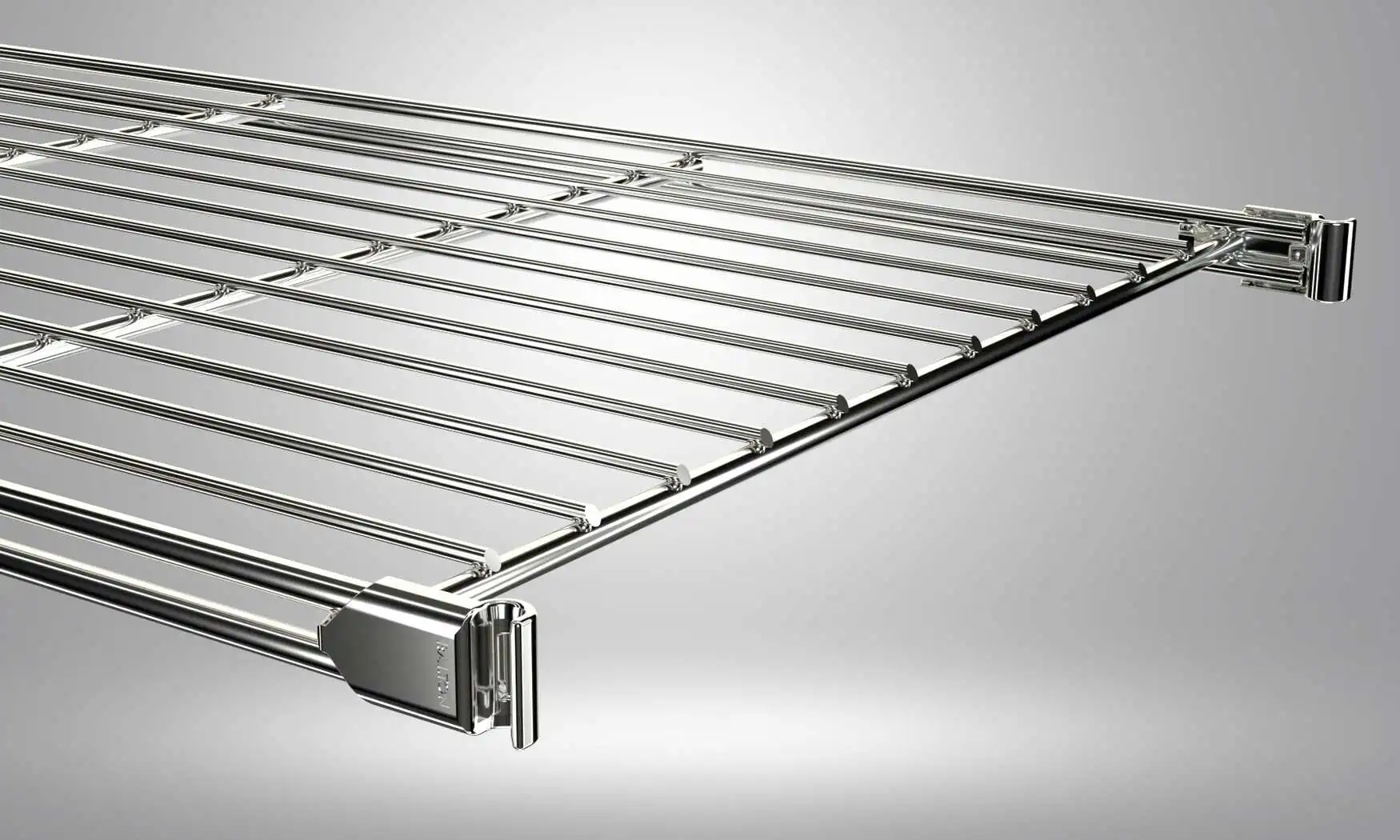 - 3 x Ablageböden: Gitterböden 87 cm breit, 38 cm tief, mit Befestigungs-Beschlägen, Metall, verchromt