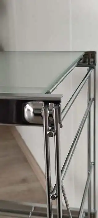 - Ausführung: Boden Milchglas mit Frontprofil Metall, verchromt