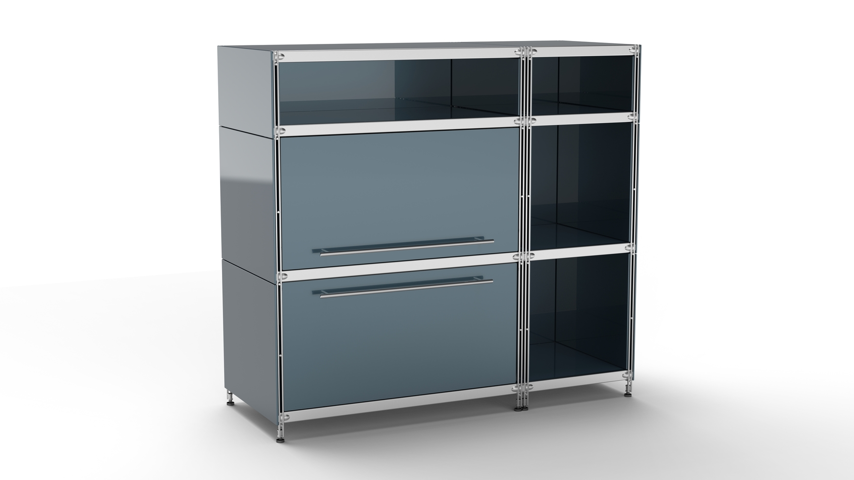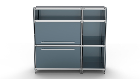 KUBUS Sideboard Metall anthrazit pulverbeschichtet mit 1 Klappe + 1 großen Schubladen + 4 offenen Fächern