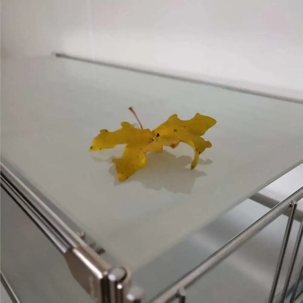 - Ausführung: ESG-Sicherheitsglas, 4mm, SD Ätzton satiniert, C-Kanten geschliffen, Siebdruck vollflächig