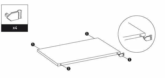 Pro Regalboden werden 4 Halterungen zum Befestigen des Bodens an die Regalleiter benötigt. Diese liegen dem Boden bei. Die Montage erfolgt durch einfaches Zusammenstecken.