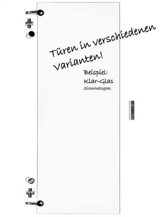 - Lieferumfang: 1x Holzkorpus zur Selbstmontage: Böden, Rückwand, Seitenteile, 3x Klar-Glas-Einlegeböden, Montagematerial - ohne Tür! Diese bitte extra bestellen! AUSLAUFMODELL