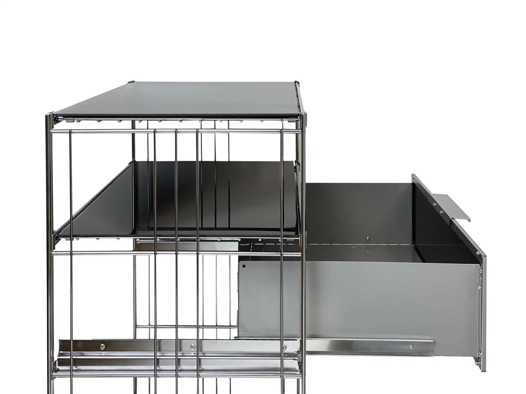 Stellen Sie sich Ihr individuelles Regal zusammen! Ohne Dekoration, ohne Gitterböden und Regalleitern. Schubladensatz zur Selbstmontage