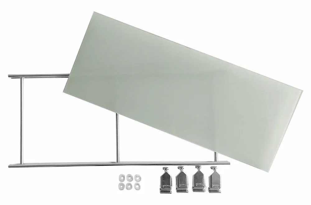- Lieferumfang: 1x Glasboden Sicherheitsglas, 1x Metallrahmen verchromt, 4 Beschläge