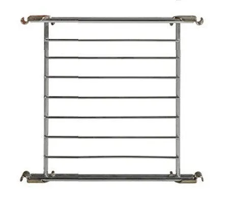 Hochwertig verarbeiteter Gitterboden aus verchromtem Stahl mit 4 Beschlägen zum Befestigen des Bodens.
