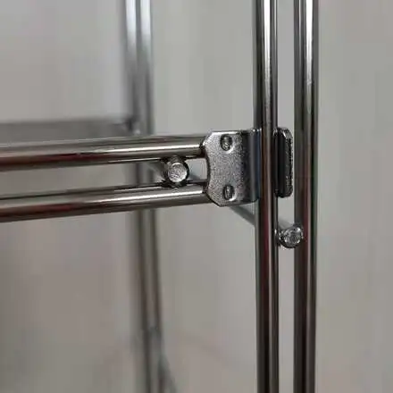 Hochwertig verarbeiteter Gitterboden aus verchromtem Stahl mit integrierten Beschlägen. Erhältlich in den Breiten 50 cm und 80 cm.