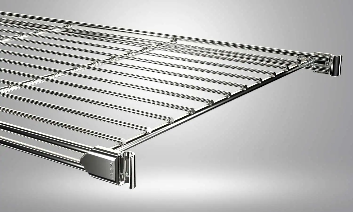 Hochwertig verarbeiteter Gitterboden aus verchromtem Stahl mit 4 Beschlägen zum Befestigen des Regalleiter Diese liegen dem Boden bei. Die Innenmaße des Gitterbodens ohne Beschläge beträgt ca. 118,25 x 38,3 cm mm.