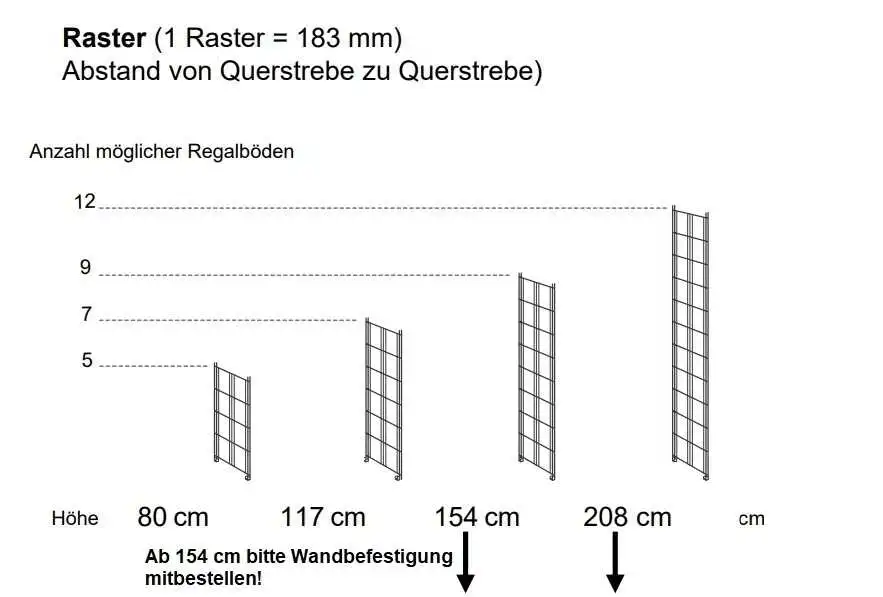 Die Regalleitern sind in 80 cm, 117 cm, 154 cm oder 208 cm lieferbar.
