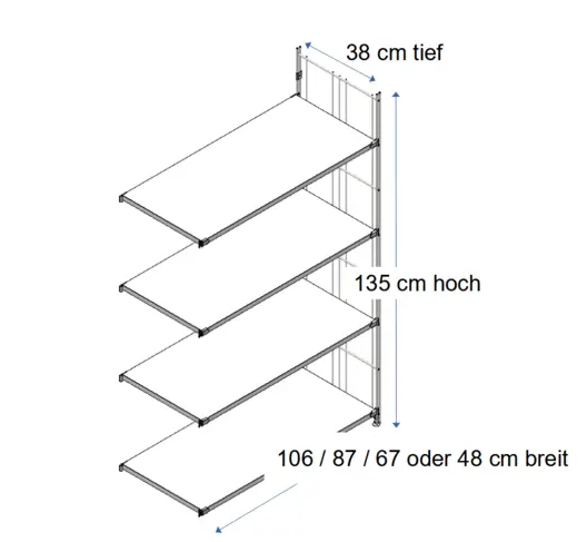 BIII Regal mit 4 Gitterböden 117 x 106 x 38 cm (Höhe x Breite x Tiefe)