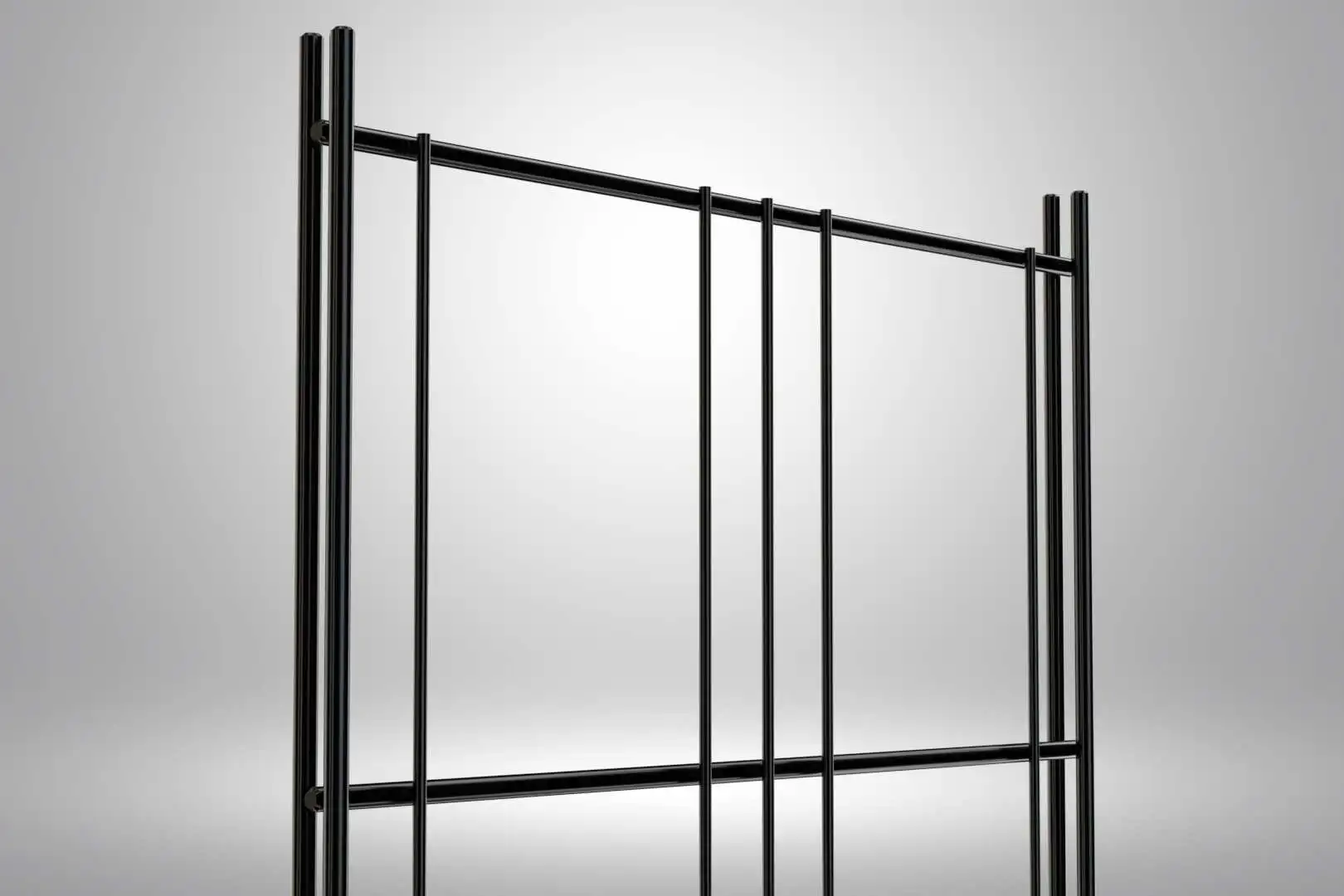 80 cm, 154 cm oder 190 cm hoch, mit Metallfüßen zur Bodennivellierung, 1x Seitenteil zur Erweiterung von schwarz beschichteten Regalen in 38 cm Tiefe