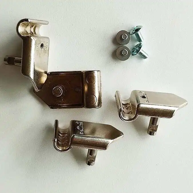 1x Set mit 4 Beschlägen mit Bohrung, Gewinde und Schrauben, zur Befestigung des Verlängerungsbeschlages an Holzböden.