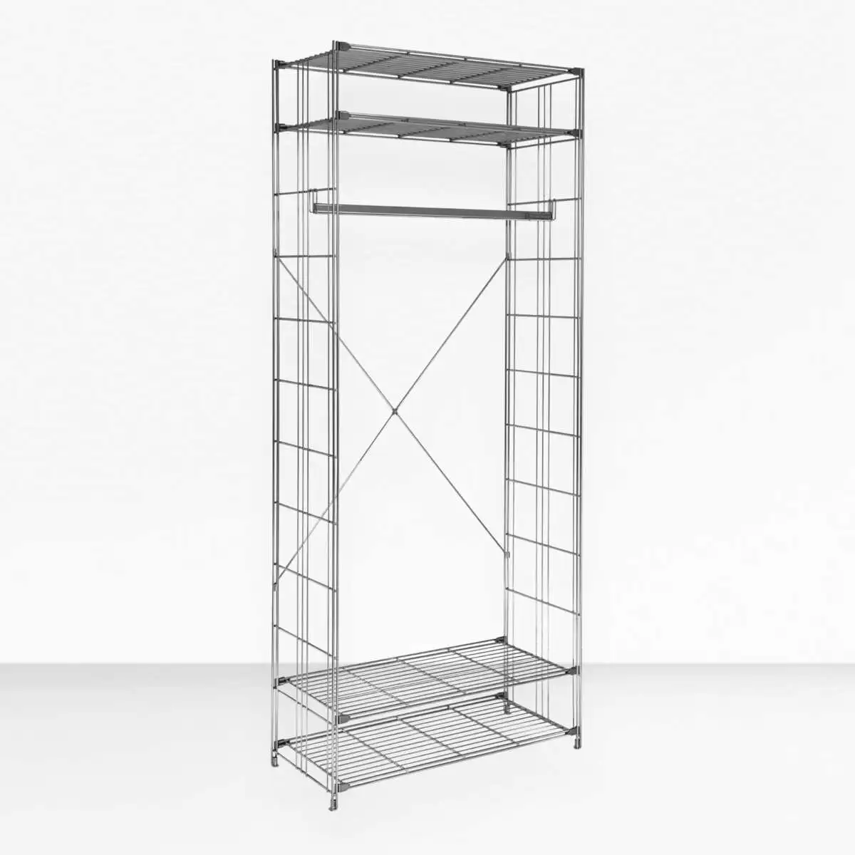 1x Kreuzstrebe Metall, verchromt mit Befestigungsmaterial. Mit dem Stützkreuz steht das Regal stabil und gerade im Raum!