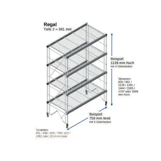 • Lieferumfang: Ergänzungsset bestehend aus: 1x Regalleitern mit Fußstollen und Zylinderschraube, sowie Gitterborde in der gewählten Anzahl und Breite! Erweiterungs-Regal für ETAGAIR-Regale in 381 mm Tiefe. Ohne Dekoration! Fußplatten oder Rollen sind nicht enthalten. Bitte separat bestellen.