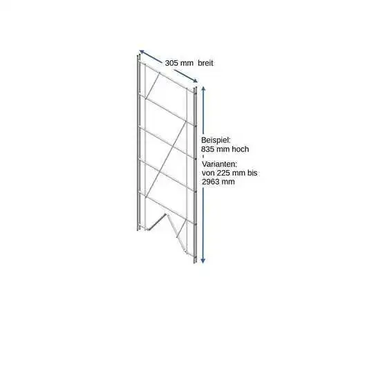 - optional: passende Ergänzungs-Sets in zahlreichen Höhen und Breiten erhältlich: Breite: 301 - 457 - 605 - 758 - 910 - 1062 mm oder 1214 mm, Höhe: 835 - 987 - 1139 - 1291 - 1444 - 1595 - 1747 - oder 1899 mm