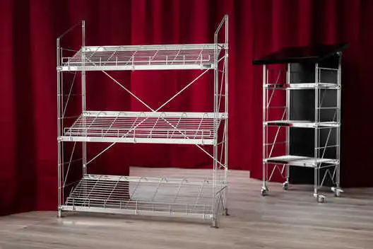Bestehend aus 2 x Regalleitern, 835 - 987 - 1139 - 1291 - 1444 - 1595 - 1747 - oder 1899 mm hoch, mit 3 - 6 Gitterborden je nach gewählter Ausführung, 1214 mm breit. Erweiterbar!