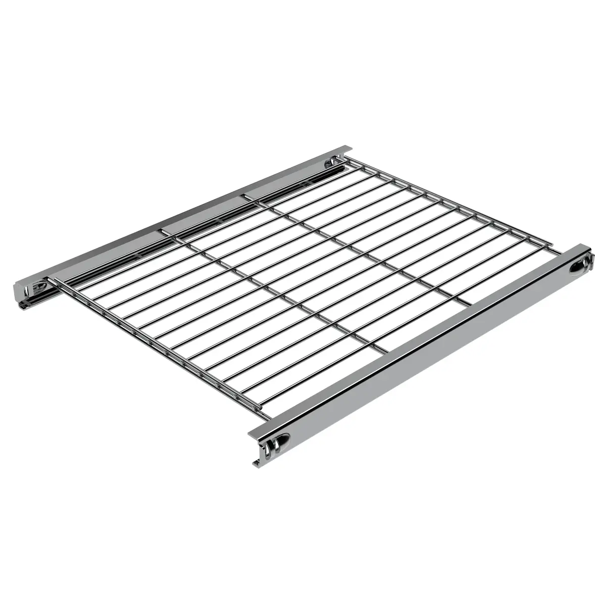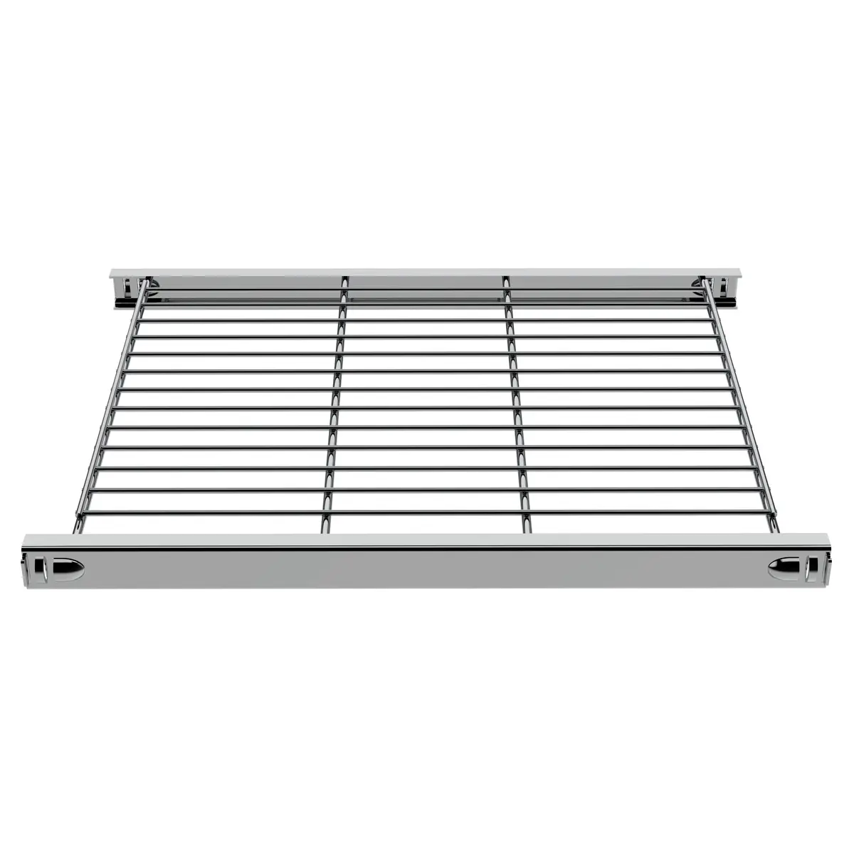 Klassisches Designer-Regal in kühlem verchromtem Metall. Das Regal ist äußerst stabil und passt zu jedem Wohn-, Geschäfts- und Bürostil. Die Böden verfügen über integrierten Halterungen. Dadurch ist die Montage einfach und schnell ohne Spezial-Werkzeuge möglich. Die Gitterböden lassen sich individuell an jeder Querstrebe anordnen.