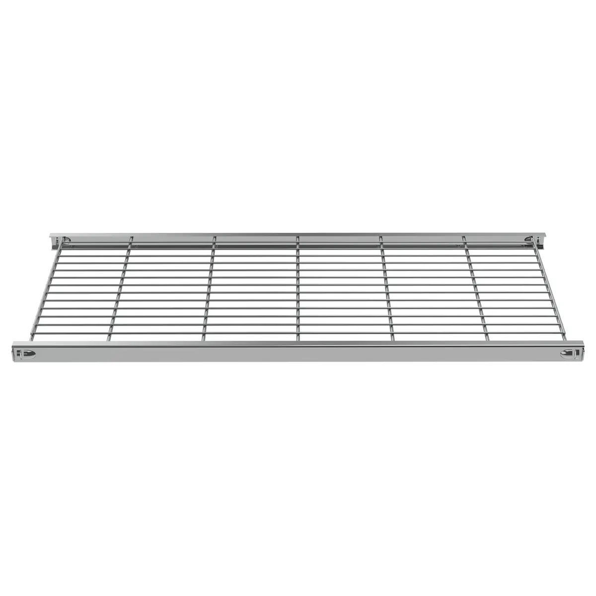 Klassisches Designer-Regal in kühlem verchromtem Metall. Das Regal ist äußerst stabil und passt zu jedem Wohn-, Geschäfts- und Bürostil. Die Böden verfügen über integrierten Halterungen. Dadurch ist die Montage einfach und schnell ohne Spezial-Werkzeuge möglich. Die Gitterböden lassen sich individuell an jeder Querstrebe anordnen.