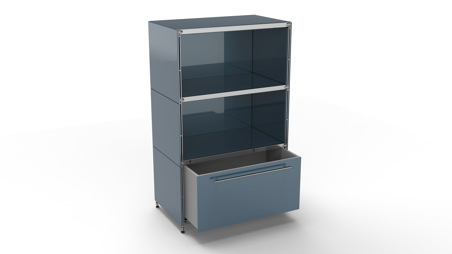 KUBUS Highboard Metall anthrazit pulverbeschichtet mit 2 offenen Fächern + 1 Schublade groß 80 cm breit