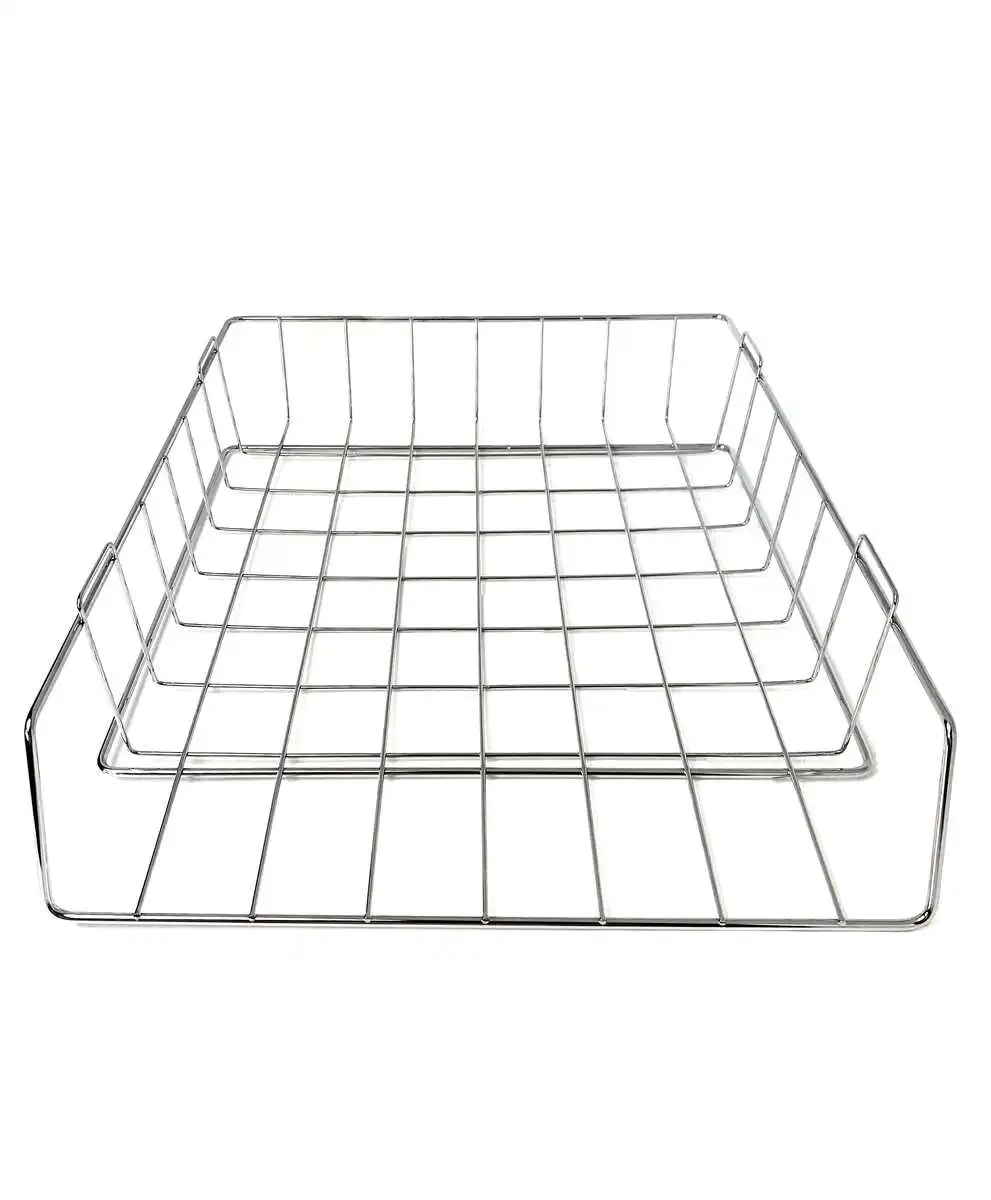 Stapelbarer Ablagekorb aus Metall. Zierlich und doch äußerst stabil. Passend für Ordner, in die DIN A4 Blätter abgeheftet werden.