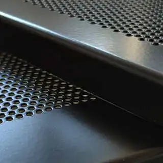 Regalset bestehend aus: 2x Regalleitern (Chrom), 3x Lochblechböden pulverbeschichtet schwarz seidenmatt in 87 cm oder 106 cm Breite, 38 cm tief, 1x Kreuzstrebe, zerlegt mit Montagematerial - Auslaufartikel