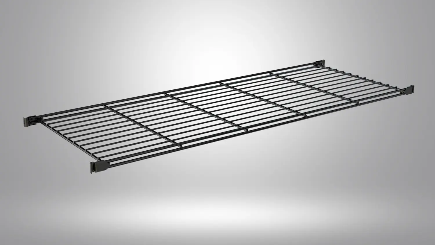 - Lieferumfang: 1x Gitterboden mit 4 Halterungen, schwarz pulverbeschichtet in der gewählten Breite, ohne Dekoration, ohne Regalleiter