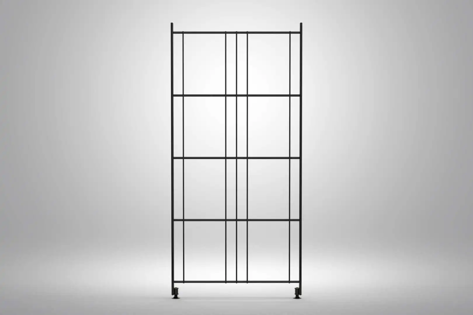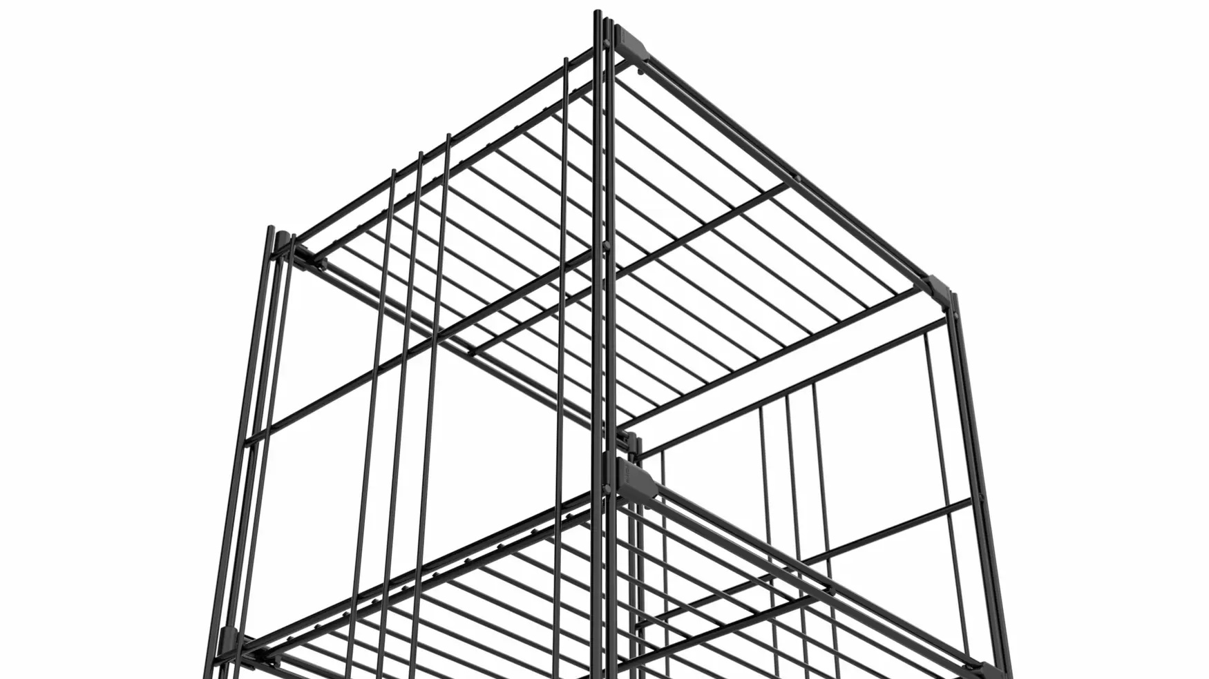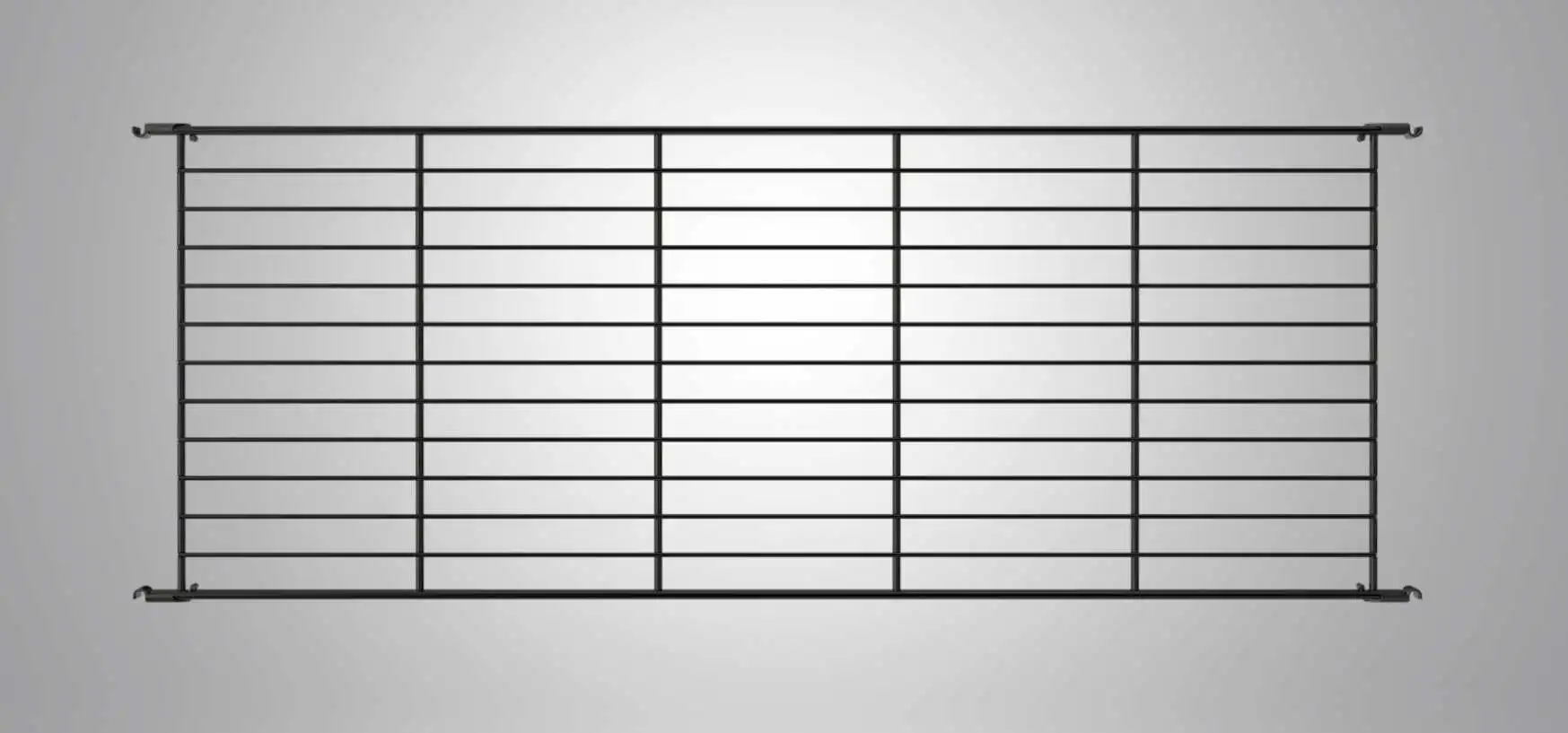 Die Gitterböden lassen sich an jeder Querstrebe einhängen. Mit Ergänzungssets ist das Regal in der Breite beliebig erweiterbar.