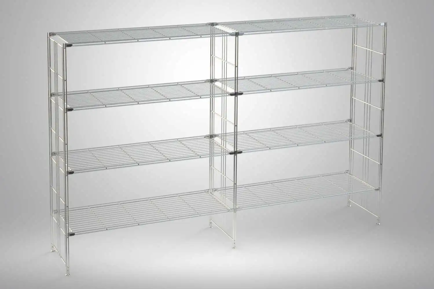 1x Regal, 135 cm hoch, 210 cm breit, 38 cm tief, mit 8 Gitterböden Metall, verchromt, hergestellt in Deutschland
