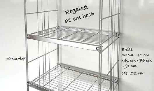 2 Gitterböden in der gewählten Ausführung: 61 cm oder 91 cm Breite
