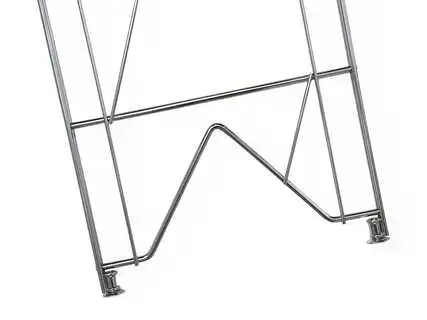 Klassisches Designer-Regal in kühlem verchromtem Metall. Das Regal ist äußerst stabil und passt zu jedem Wohn-, Geschäfts- und Bürostil. Die Böden verfügen über integrierten Halterungen. Dadurch ist die Montage einfach und schnell ohne Spezial-Werkzeuge möglich. Die Gitterböden lassen sich individuell an jeder Querstrebe anordnen.