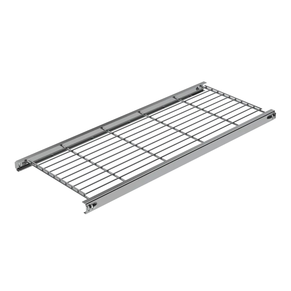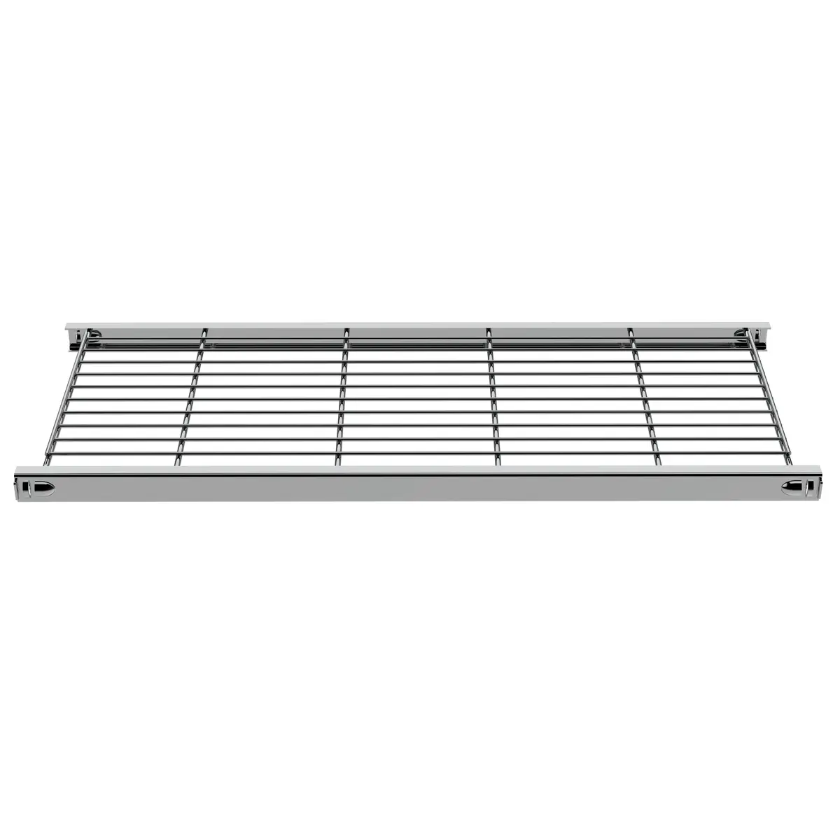Klassisches Designer-Regal in kühlem verchromtem Metall. Das Regal ist äußerst stabil und passt zu jedem Wohn-, Geschäfts- und Bürostil. Die Böden verfügen über integrierten Halterungen. Dadurch ist die Montage einfach und schnell ohne Spezial-Werkzeuge möglich. Die Gitterböden lassen sich individuell an jeder Querstrebe anordnen.