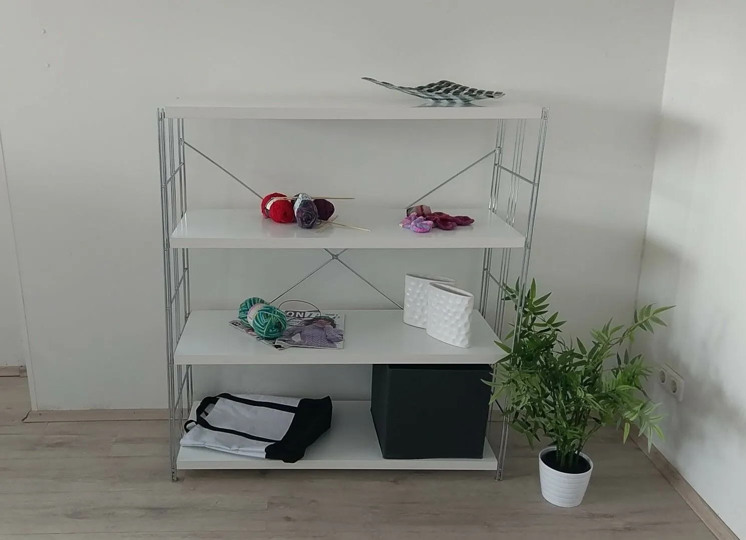 1x Regalset mit 4 Ablageböden creme-weiß, 117cm hoch, 105 cm breit, 38 cm tief