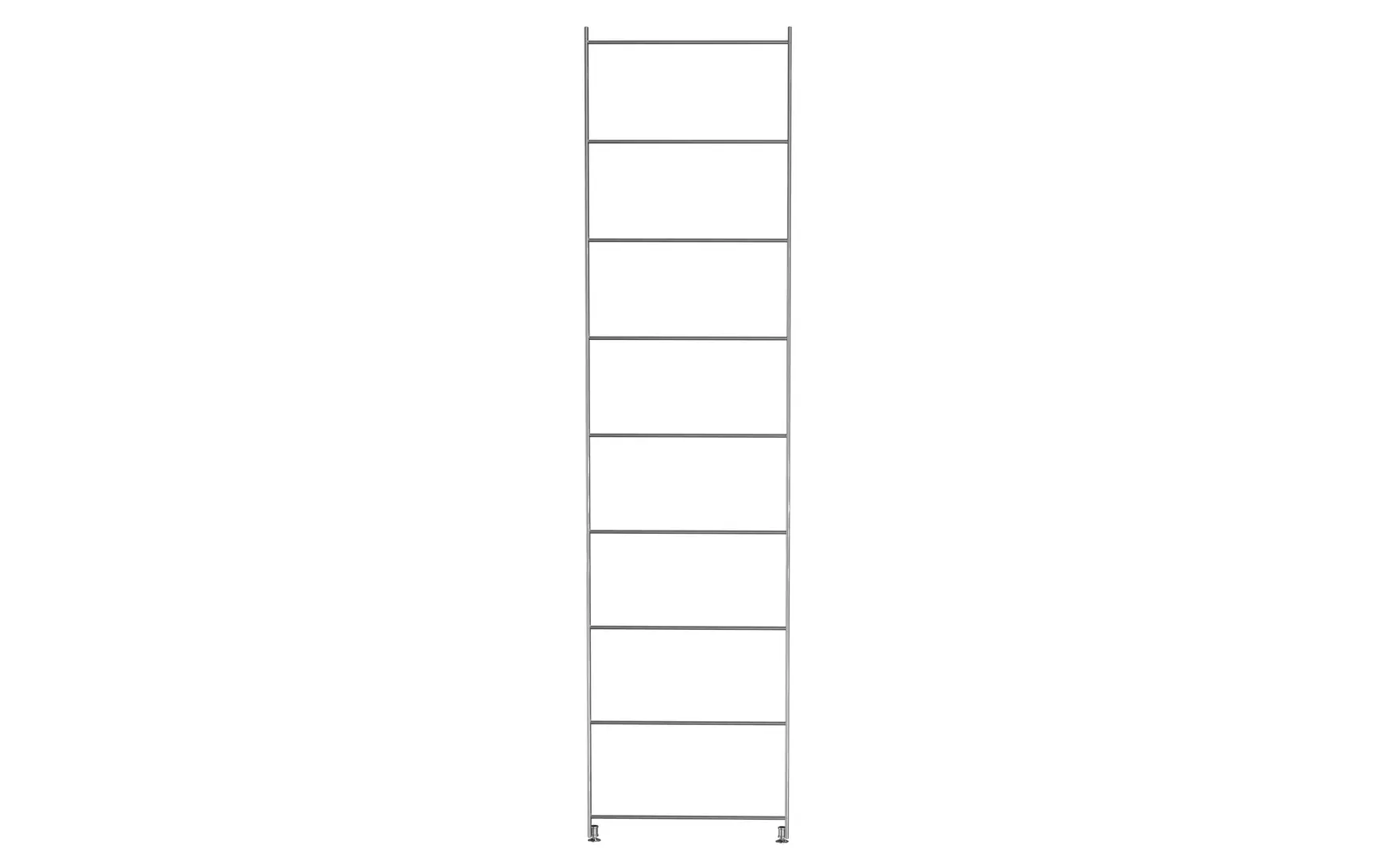 Regalleiter aus verchromtem Stahl mit höhenverstellbaren Möbelfüßen. Kompatibel zu BIII 380 Regal-Elementen. Wir empfehlen die Regalleiter mit einer Wandbefestigung zu sichern (Kipp-Sicherung). Restposten - so lange Vorrat reicht