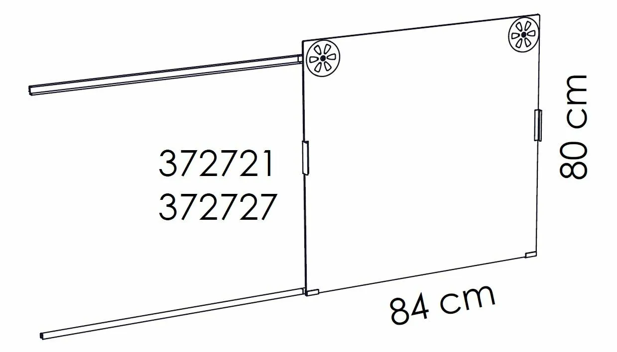 Chice Schiebetür in satinierter Milchglasfront oder Schwarzglas. Die Türen sind zur Montage für Gitter-, Blech- und Holzböden in 85 cm Breite vorgesehen. Durch die beiliegenden Auszugsschienen lassen sich die Türen über eine Fläche von 170 cm schieben (Auszugsschienen für 2 x 85 cm beiliegend).
