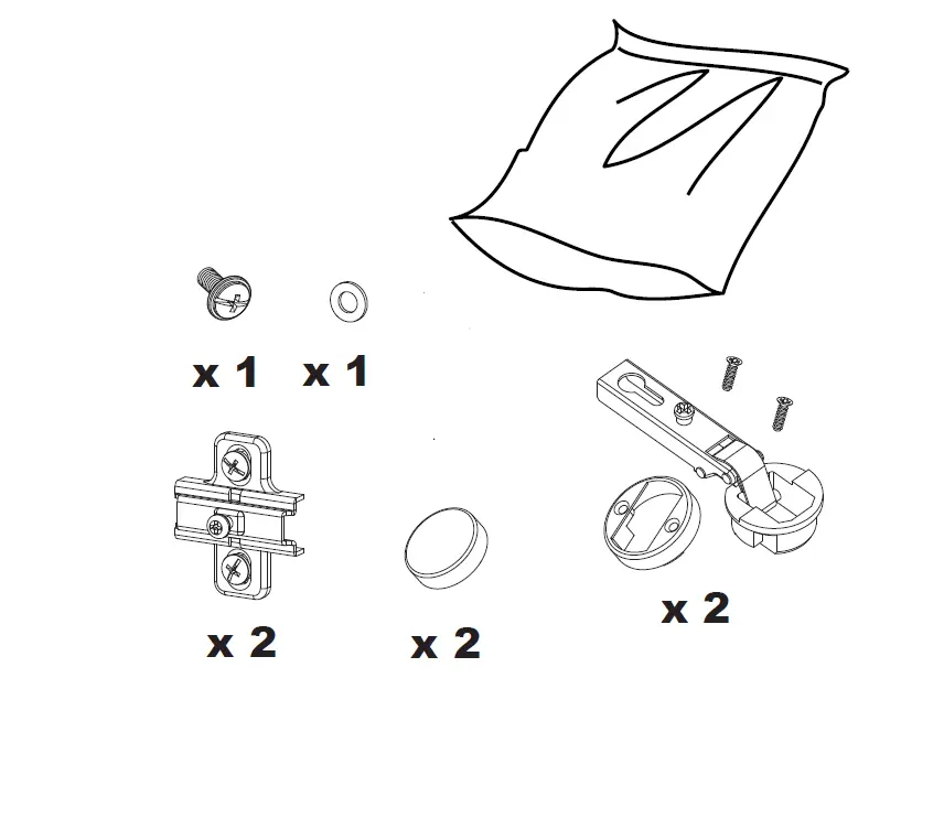 - Lieferumfang: 1x Scharnierset für 1 Glastür B III 380 Milchglas / Schwarzglas
